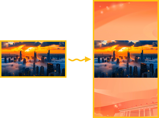 当视频的主体内容不适合裁剪时,可以通过添加背景的方式将横屏转换为竖屏。